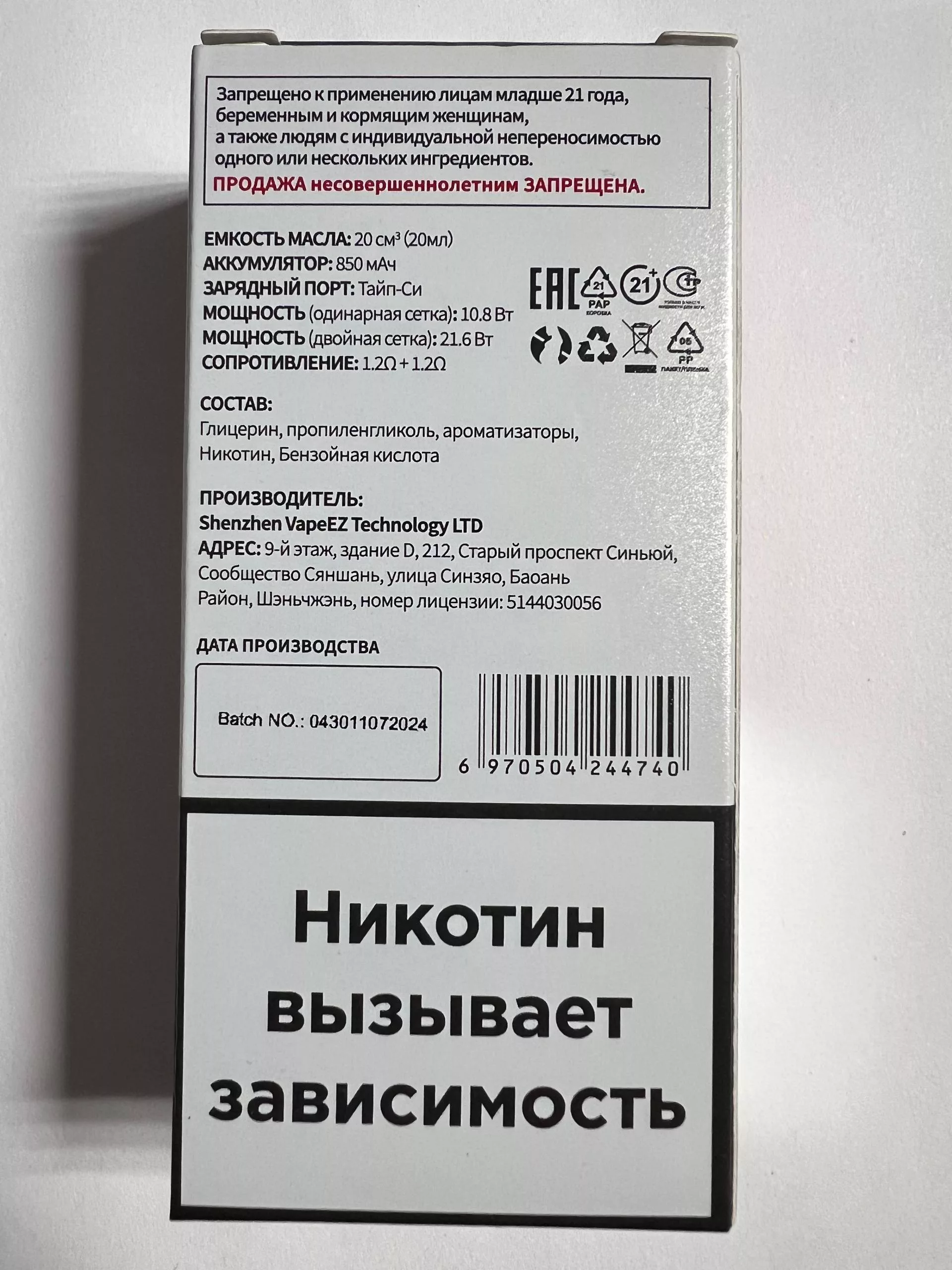 Производитель: Shenzhen VapeEZ Technology LTD